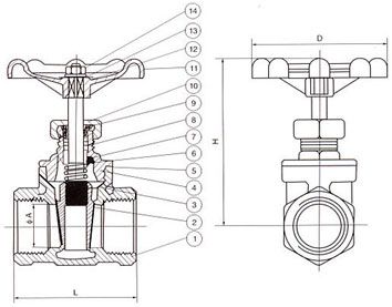 三、Z15W不锈钢内螺纹闸阀结构图: